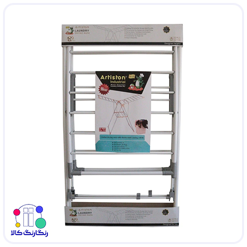 – بند رخت آرتیستون صنعت مدل مفصلی ( ABS) – ابعاد : ۱۱x۳۳x۶۳ سانتی متر – ابعاد در حالت تا شده : ۶۱x۹x۱۰۹ سانتی متر – دارای ۲۱ میله فلزی و محکم برای خشک کردن انواع مانتو، پالتو، روسری و شال و… – تاشو و کم جا – جنس : فلز با روکش الکترو استاتیک ( ABS)